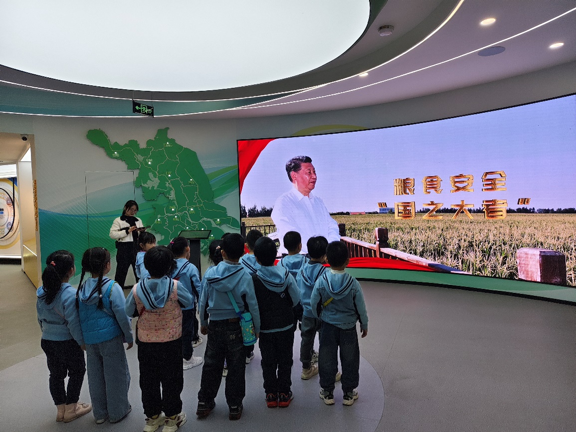 11月11日,幼儿园教师带领全体幼儿走进江苏省粮食安全科普教育基地开展教育实践活动,领略粮食的奥秘和魅力。粮食安全科普教育基地是收藏研究、成果展示、科普教育等多功能的粮食文化综合空间,展示了江苏作为粮食生产大省、流通大省、产业强省、科技强省的高质量发展成果。