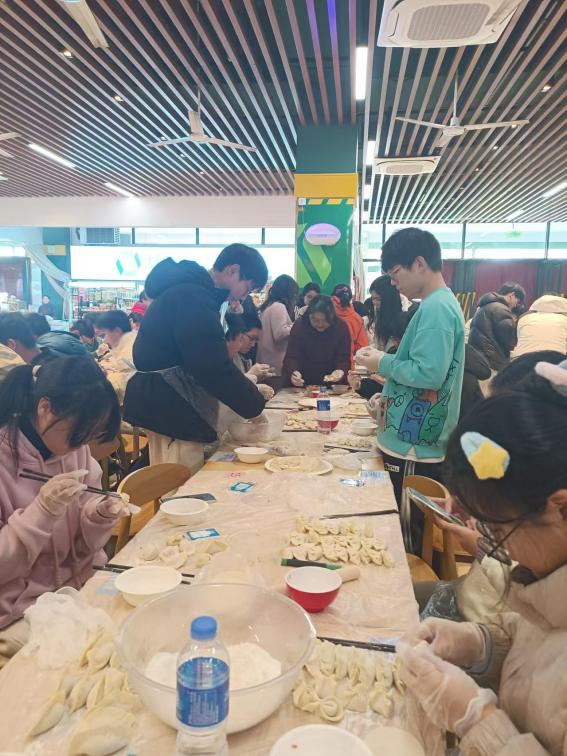 在食堂工作人员的指导下,各学院的老师和同学们小心翼翼地拿起饺子皮,舀上适量的馅料,捏出好看的褶皱,不一会儿,形状各异的饺子逐步成型。对不熟悉包饺子方法的同学,食堂工作人员也耐心地手把手进行教学。伴随着欢声笑语,一盘盘皮薄馅大、各式各样的饺子摆上了桌面。师生们吃上热腾腾的饺子,也感受到了“自己动手、丰衣足食”的乐趣,温馨的氛围也为寒冷的冬日注入了浓浓的暖意。
