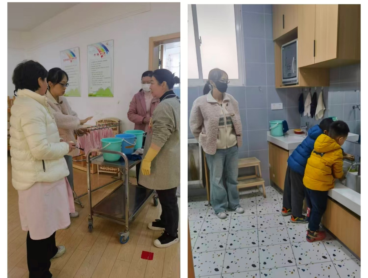 复审组先进入幼儿园厨房,进行了严格细致的检查。从食堂粗加工间、操作间、备餐间的环境卫生、厨房设备的使用和消毒,到食品的制作、留样、餐具的清洗和保洁,每一个环节专家们都细细排查,关注每一个食品制作的风险点。仔细查看厨房的每一个角落,确保食品制作流程科学规范合理,为幼儿的食品安全保驾护航。走出厨房,复审组进入活动室,对班级室内外环境进行了全面视察。仔细检查了教室的采光、通风、温湿度,以及玩教具、桌椅、水杯、毛巾的清洗消毒情况。